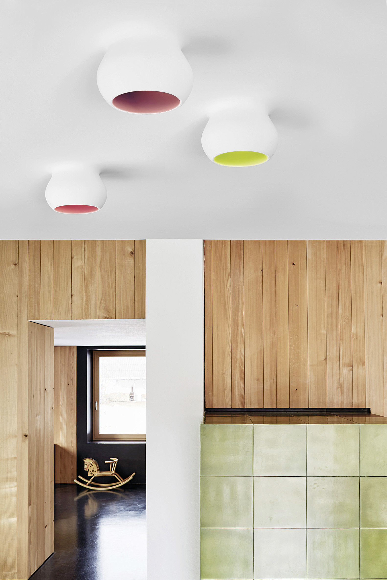 Das Lichtmodul fließt harmonisch aus der Decke und schafft ein sinnliches Lichterlebnis. Durch Farbe oder