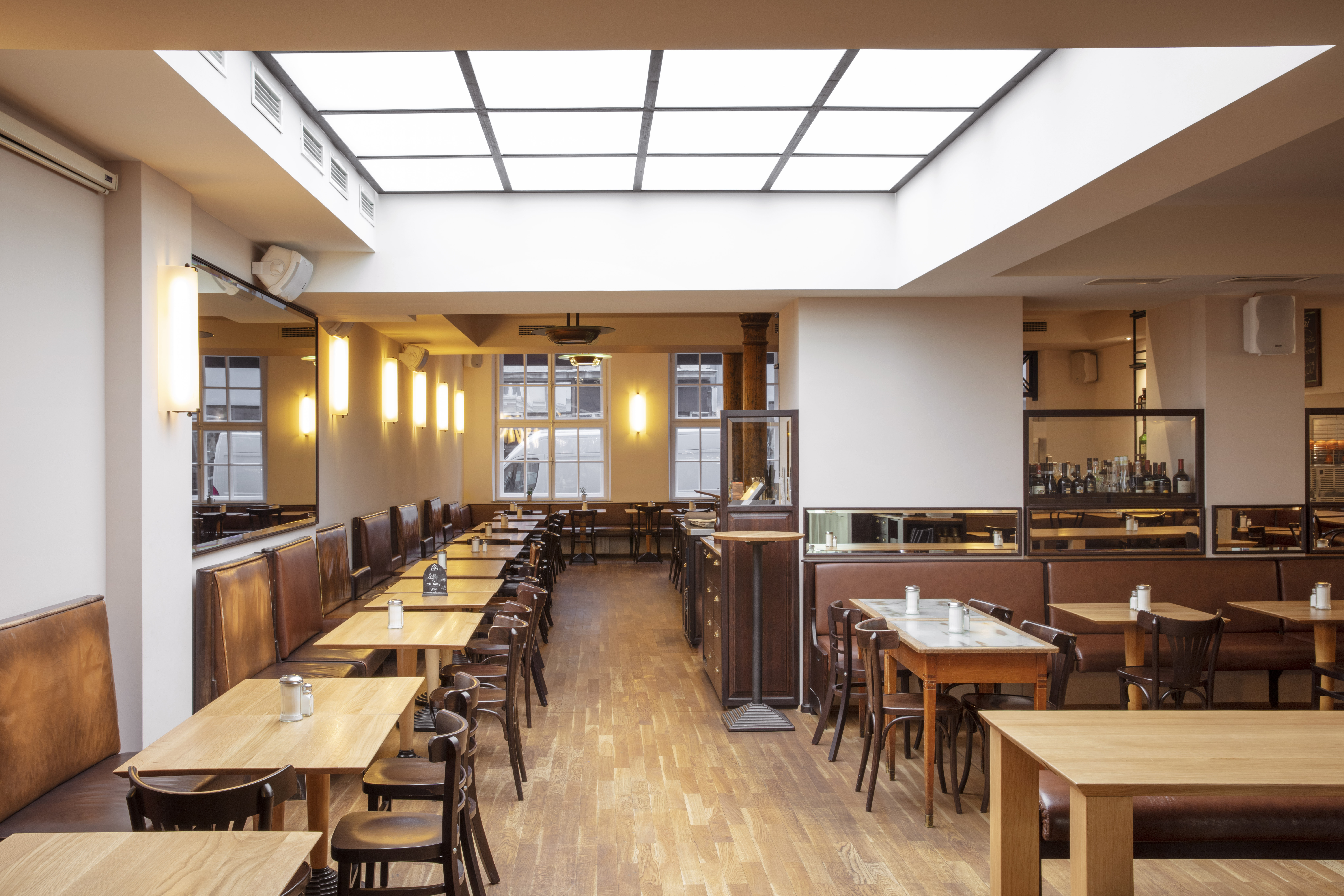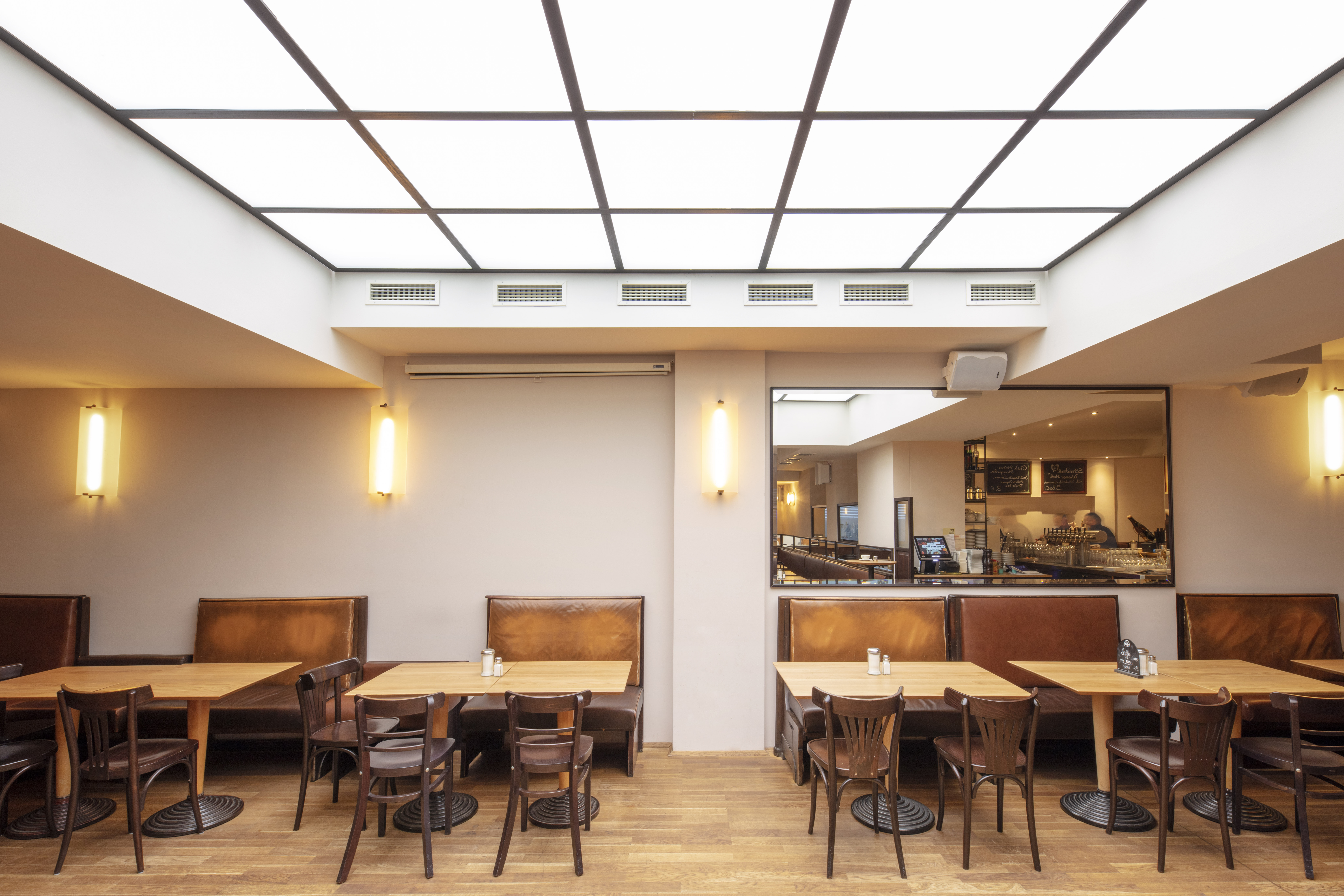 Im Café Puk sollte der Eindruck des früher vorhandenen Lichthofs wieder hergestellt werden.